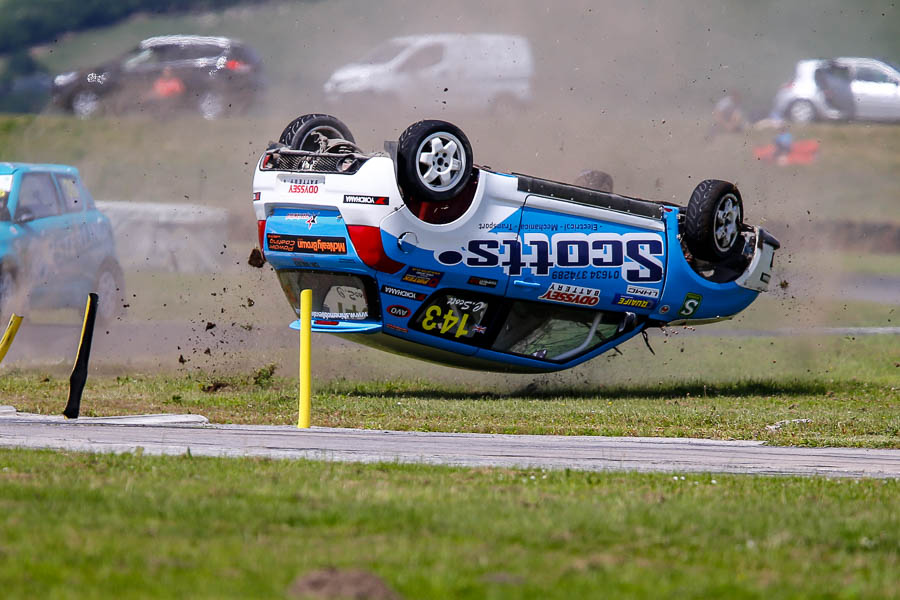 Chris Scotts’ roll may have looked spectacular he got out quickly and was unhurt. They got the car looking good and out again for the Sunday.